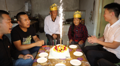 在翻查民情日志的時(shí)候,我看到了兩位老人家的生日。他們無(wú)兒無(wú)女,我便籌劃著給老兩口過一次生日。后經(jīng)支部研究決定,我們?yōu)槔蟽煽谶^了一個(gè)溫暖的生日。