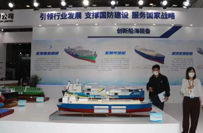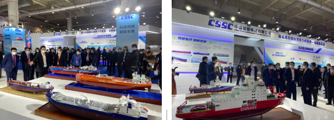 在創(chuàng)新船海裝備展區(qū),中國(guó)船舶集團(tuán)集中展示了清潔能源船舶、系列LNG船、系列集裝箱船、系列油船、系列散貨船、系列科考船、系列特種船和未來船舶八個(gè)板塊。