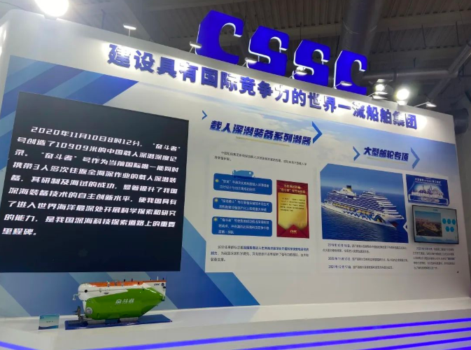 在重大科技專項(xiàng)工程展區(qū),中國(guó)船舶集團(tuán)集中展示了在深海科學(xué)研究和海洋資源開發(fā)領(lǐng)域深化實(shí)施的“蛟龍”號(hào)、“深海勇士”號(hào)、“奮斗者”號(hào)三型載人深潛裝備等一批重大科技專項(xiàng)工程,以及取得的突破性、標(biāo)志性的成果。其中,展會(huì)現(xiàn)場(chǎng)展示的“奮斗者”號(hào)創(chuàng)造了10909米的中國(guó)載人深潛深度紀(jì)錄。