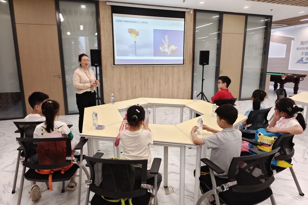 通過“國之重器”模型展示講解,積極聯動“愛在深藍”船舶青年優秀志愿者講授“國之重器”的由來,孩子們感悟到船舶科技的魅力,也對我國船舶工業成就有了直觀生動的認識。