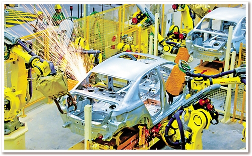 圖為東風(fēng)旗下神龍公司的自動(dòng)化生產(chǎn)線