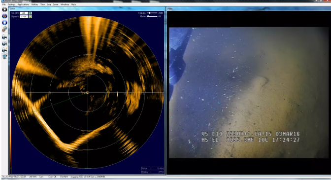 七〇二所利用機(jī)器人及探測聲吶對(duì)沉井封底前的基底以及沉井地面進(jìn)行了檢查??蒲腥藛T通過操縱水下機(jī)器人及探測聲吶對(duì)6座水下橋墩共72個(gè)井口進(jìn)行視頻探測、聲吶掃描,讓施工方能夠直觀地看到水底情況,并測量出淤泥的高度、厚度,發(fā)現(xiàn)水底障礙物,為精確實(shí)施井孔內(nèi)抓泥、清除江底沉積障礙物提供了科學(xué)的數(shù)據(jù)支撐,有效避免了可能發(fā)生的立管傾斜等工程建設(shè)風(fēng)險(xiǎn),為高質(zhì)量建成滬蘇通長江公鐵大橋增添了閃亮的中國船舶科技色彩。