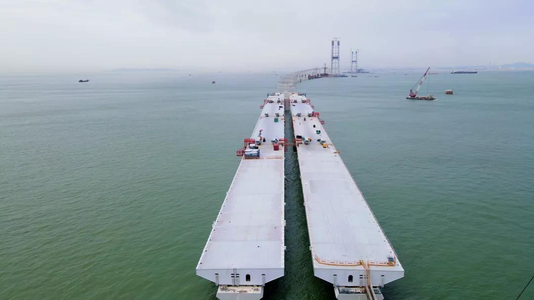 深中通道的橋梁鋼箱梁,將由“天一”號運(yùn)架梁一體船、“小天鵝”號新型自航式專用起重船等“架橋神器”負(fù)責(zé)架設(shè)。