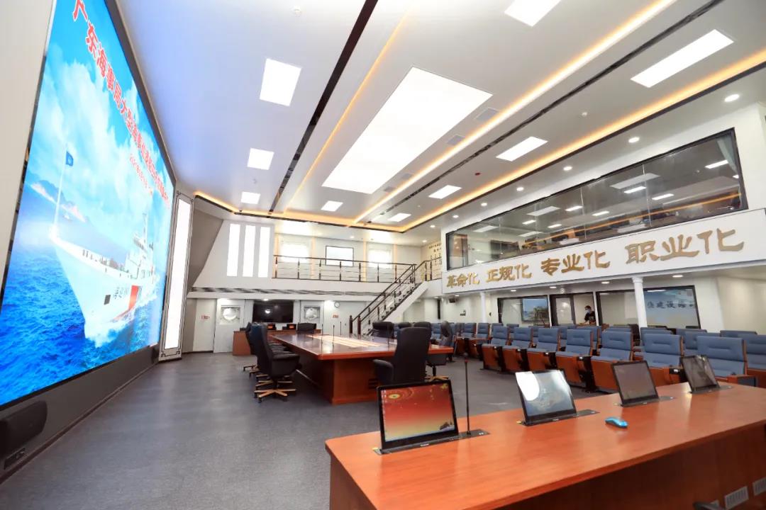 “海巡09”是全球先進的海上綜合指揮平臺,建有海上數據中心和綜合指揮大廳。綜合指揮大廳最吸引人眼球的就是這一塊長8米、高4.55米的大型LED顯示屏。然而這僅只是“海巡09”指揮系統霸氣的外表。事實上,它包括了移動監管指揮平臺等16個子系統,可以通過與包括北斗在內的5套衛星系統進行數據傳輸,實現海上艦船編隊自組網和建立數據集群,并且網絡速度可以達到10兆以上,真正實現“陸??仗臁币惑w化海事管理。
