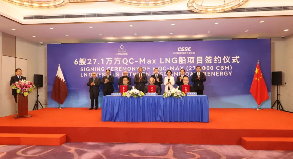 9月9日,三方新簽了6艘全球最大27.1萬立方米超大型LNG船訂單。至此,三方已累計簽訂24艘27.1萬立方米超大型LNG船、12艘17.4萬立方米大型LNG船,以載氣量計,位居全球各船廠之首。卡塔爾能源事務國務大臣、卡塔爾能源總裁兼首席執行官薩阿德·謝里達·阿爾卡比,上海市副市長陳杰,中國船舶集團黨組成員、總會計師賈海英等出席簽約儀式。