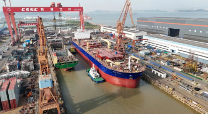 12月17日,中國船舶集團旗下黃埔文沖為大百匯實業集團有限公司批量建造的10萬噸級深遠海大型智能養殖工船首制船順利出塢。
